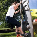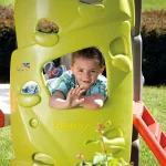 - Ils pourront jouer aux grimpeurs avec les trois murs d’escalade équipés de prises ! Arrivés sur la plateforme, ils pourront redescendre grâce au toboggan et sa glisse de 1.50m.